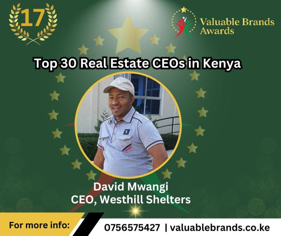 David Mwangi is the Chief Executive Officer of Westhill Shelters Ltd, a real estate company based in Nairobi with land projects in Juja Farm, Ruiru among other locations.